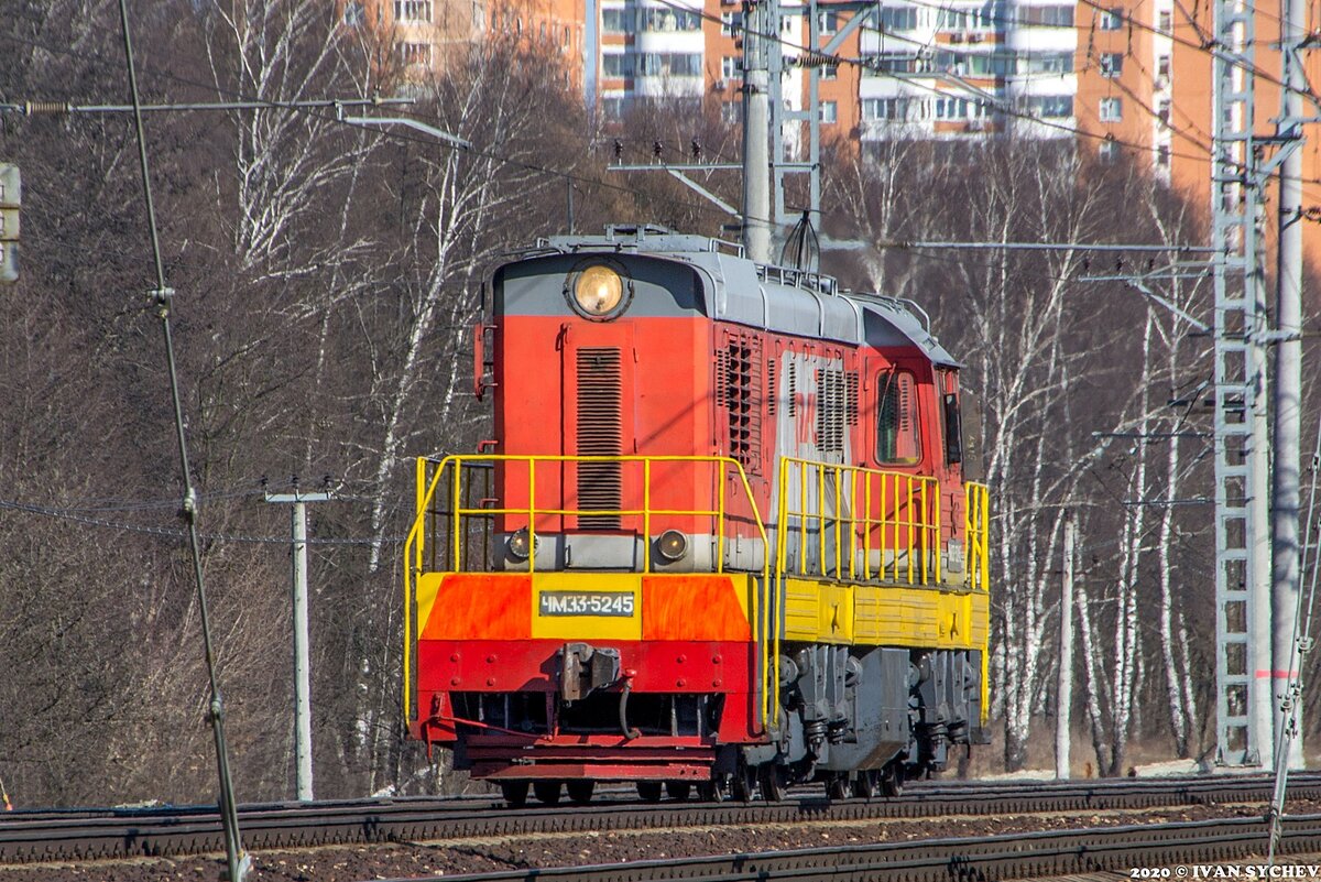 1. Но начнем сначала: ничего не предвещало снимков "в паре", и я просто фотографировал идущий с приличной скоростью со стороны Железнодорожной маневровый ЧМЭ3-5245.