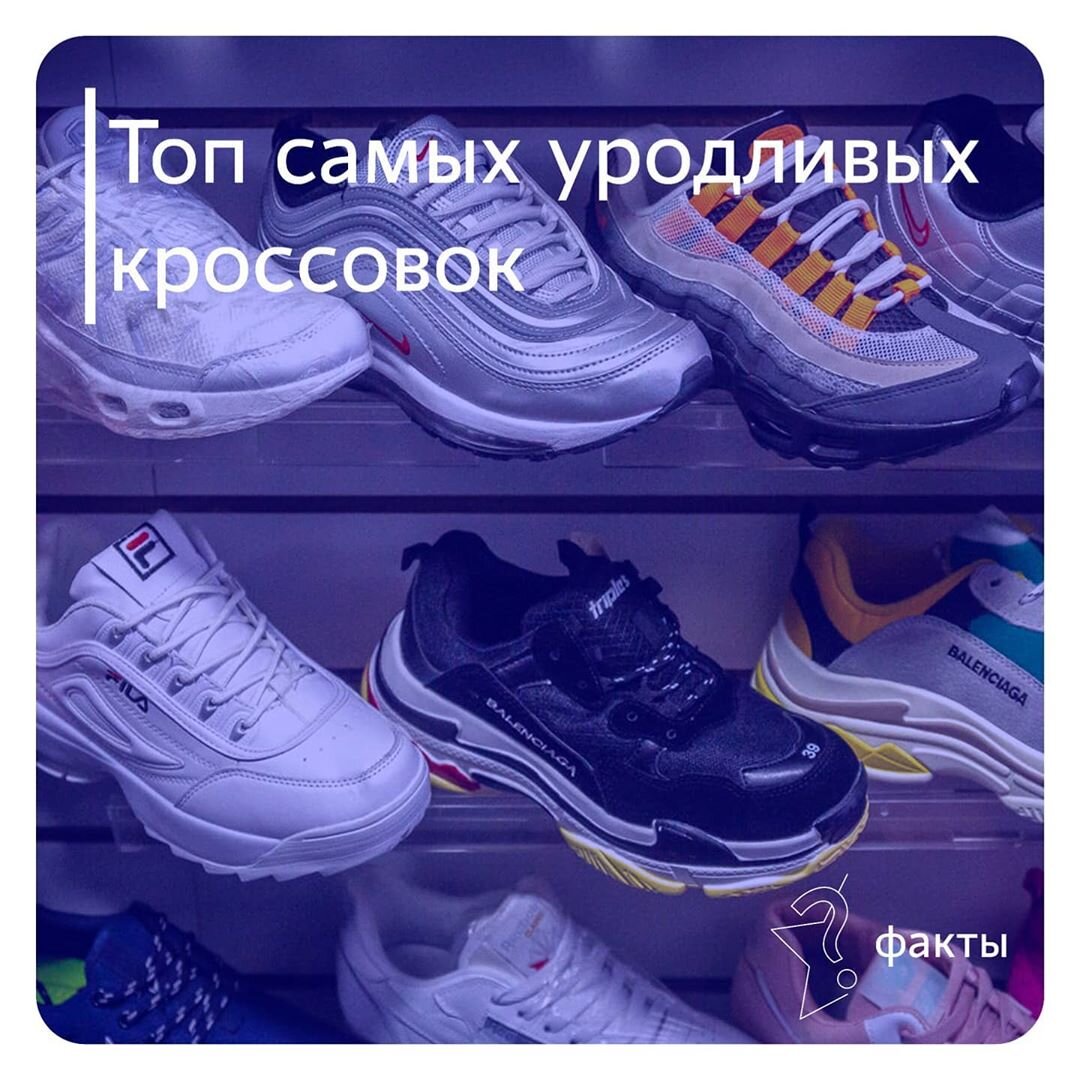 1.Fila Disruptor соответствуют всем канонам некрасивых кроссовок: небрежный силуэт, массивная грубая подошва, обилие декора и большой логотип бренда. Одним словом, идеальная уродливая модель. Но в Москве в такой обуви можно запросто слиться с группой подростков, среди которых эти кроссовки пользуются особенным спросом