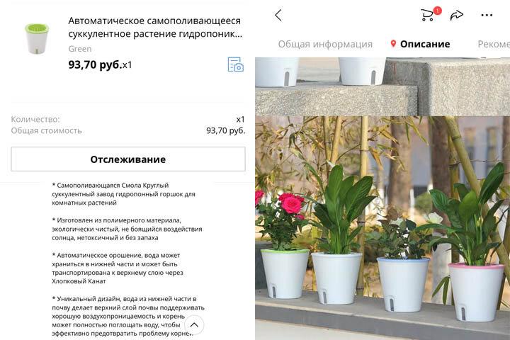 Ранее я рассказывал об одном товаре который помогал нам забыть о поливе растений на некоторое время. Вместе с ним заказал на Алиэкспрессе ещё одну посылку решающую проблему полива. Цена такого товара равна 93,70 рублей. Отзывы к сожалению я прочитал только после оплаты. Трое человек из одиннадцати написавшие отзыв жаловались на то что товар не пришёл. Доставка заняла больше времени чем обычно (около двух месяцев). Но не смотря на мои опасения товар пришёл. Быть может причиной задержки была ситуация с вирусом которая никак не может утихнуть. Конструкция этого горшочка достаточно простая. Всего две детали. В первую сажаем растение которое хотим вырастить. Во вторую деталь наливаем воды. Также в описании указан что для транспортировки воды к растению можно использовать хлопковый канат. К сожалению в наборе его не было. Собирается очень просто. Вставляешь одну часть в другую и все. Для контроля уровня воды в стаканчике предусмотрено небольшое окно. Процесс роста растения в этом стакане на