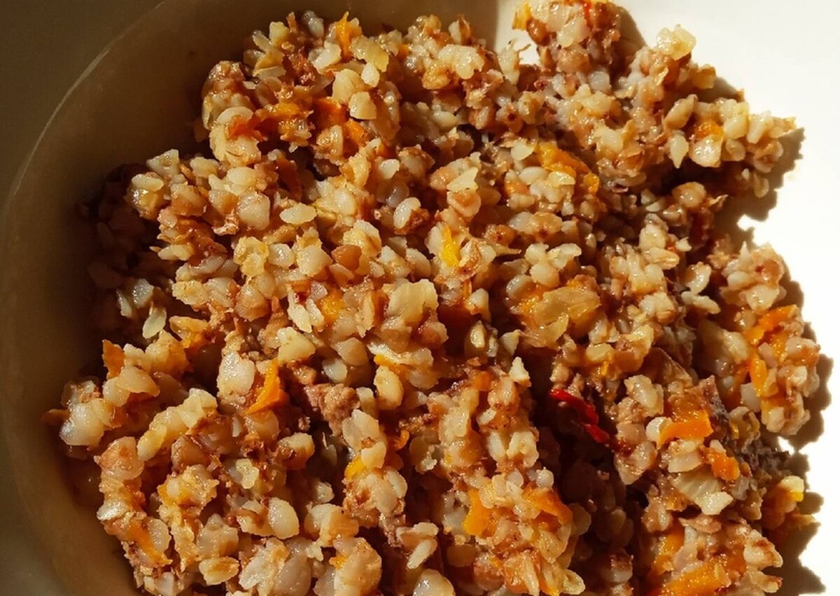 привет сегодня я хочу вам рассказать как можно сделать из обычной гречки. Блюд а которые понравятся взрослым и детям , блюда которые могут подаваться на праздничный стол не виде гарнира , а как отдельное блюдо 1. Блюдо о котором я хочу рассказать это будет гречка в горшочке . Можно делать и с грибами и с мясом или просто с овощами . Ингредиенты 1. гречка примерно 2 столовые ложки на один горшочек . 2. из овощей нам понадобиться лук и морковка. 3. мясо или грибы. Приготовление Первым делом на сковороду выливаем одну столовую ложку растительного масла и мясо и прогревайте по появления серого цвета не забудьте посолить прогревайте примерно 3-5 минут .