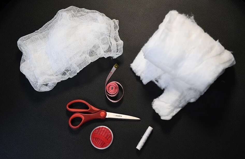 Во многих аптеках медицинские маски уже раскупили. Как быть? Можно сделать ее самостоятельно. Да, это будет та самая ватно-марлевая повязка, делать которую многих из нас учили в школе на уроках ОБЖ. Нужно: марля, вата, нитка, иголка, ножницы, линейка или сантиметр. 1. Отмерьте полосу марли длиной 90 см и шириной 40 см 2. Сложите марлю вдоль длинной стороны. 3. Отмерьте по 35 см с каждой стороны - это будущие завязки. Разрежьте их вдоль по середине. 4. В центре остался квадрат со сторонами 20 см - это основа будущей маски. 5. От куска ваты толщиной не менее 1 см отрежьте квадрат 20X20 см и вложите внутрь квадрата из марли. 6. Прошейте по трем сторонам основу маски, чтобы вата не вылезала наружу. Носить маску с ватой внутри можно 3 - 4 часа. Затем следует ее заменить. Важно! Использовать маску необходимо, если вы ухаживаете за заболевшим родственником, в поликлиниках, местах массового скопления людей (общественный транспорт, торговые и офисные центры). В быту и во время про