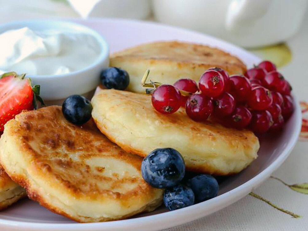 Состав: Приготовление: Выкладываем весь творог в мисочку и вилкой раздавливаем, чтобы не осталось крупных комков. Разбиваем в него яйца, высыпаем сахар и тщательно все перемешиваем. Из нашего опыта лучше не использовать слишком сухой или слишком влажный творог, иначе сырники будут разваливаться в процессе приготовления. Всыпаем в творог 5 столовых ложек муки и тщательно перемешиваем. По желанию можно добавить немного больше муки, сырники получатся тогда более плотными, а если муки добавить чуть меньше, тогда сырники будут нежнее. По итогу у нас получается однородная масса, из которой будем лепить сырники. На среднем огне в сковороде разогреваем подсолнечное масло. Насыпаем на тарелку немного муки и приступаем к лепке сырников. Слепляем несколько небольших шариков из получившейся творожной массы и выкладываем их на тарелку их на тарелку, лучше лепить разом, сколько поместится одновременно на вашу сковороду. По очереди обкатываем творожные шарики в муке, плющим их в небольшие лепешки (н
