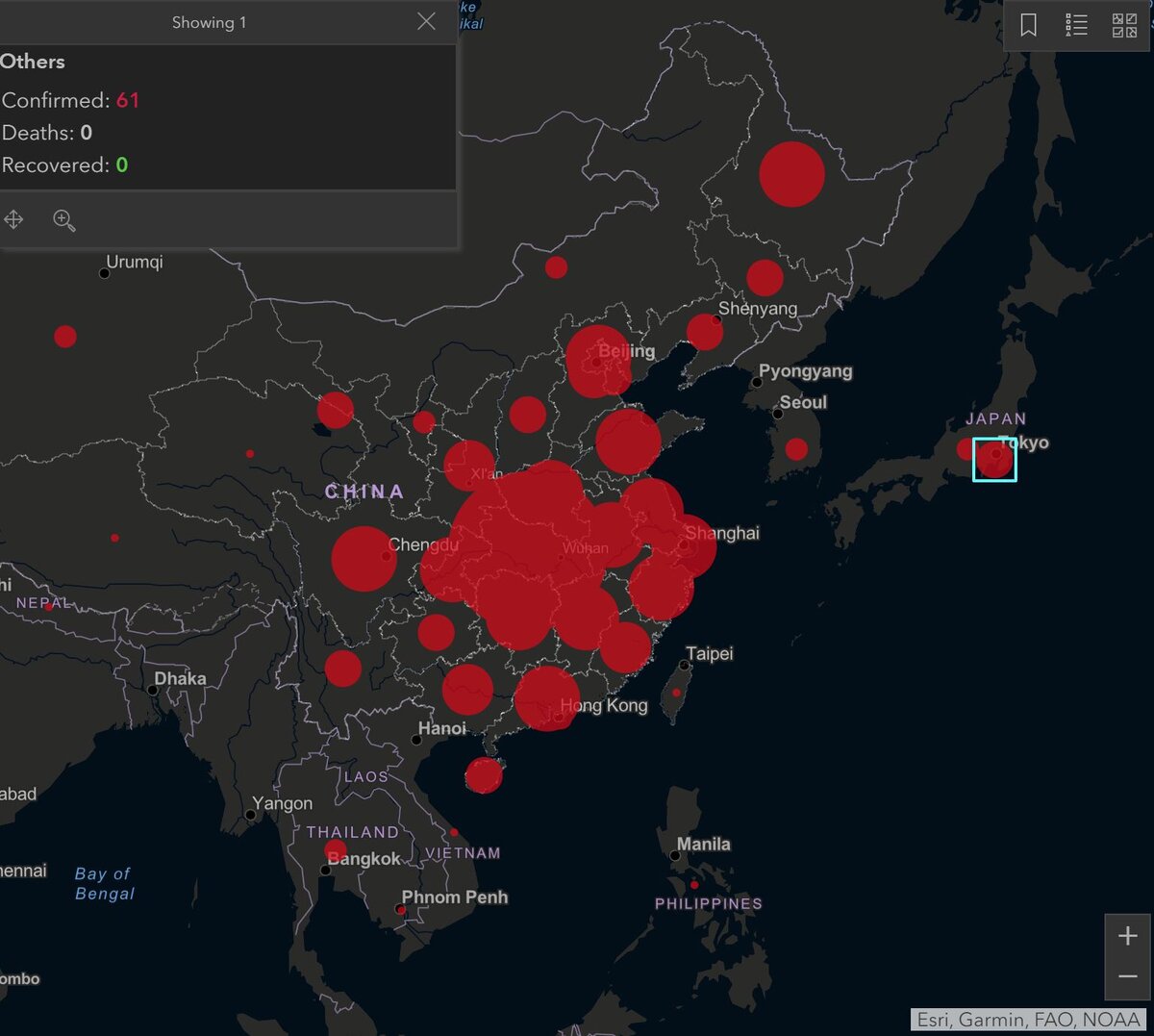 Исследовательский центр системных наук и инженерии американского университета Джонса Хопкинса запустил сервис онлайн-мониторинга распространения коронавируса 2019-nCoV. Сервис отображает данные, собранные Всемирной организацией здравоохранения, и обновляется в режиме реального времени. На карте отмечены все страны мира, в которых зафиксированы случаи заражения коронавирусом. Данные о числе заболевших, умерших и излечившихся есть как по странам в целом, так и по конкретным областям, провинциям, регионам или штатам. Также создан российский ресурс с картой и статистикой распространения коронавируса. Кроме карты с зафиксированными случаями заражения коронавирусом ресурс предлагает наглядные графики его распространения. Кроме того доступен ресурс от Яндекс с картой распространения коронавируса и статистическими данными. Своя онлайн-карта распространения коронавируса появилась у «2ГИС». Все ресурсы являются официальными, но статистика на них немного отличается друг от друга в связи с разниц