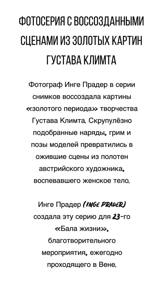Фотосерия с воссозданными сценами из золотых картин Густава Климта