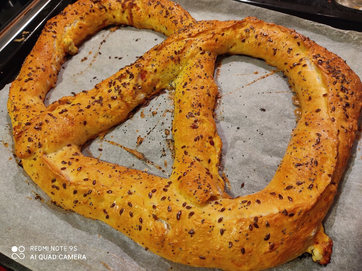 Наш гигантский крендель с начинкой готов-приятного аппетита!