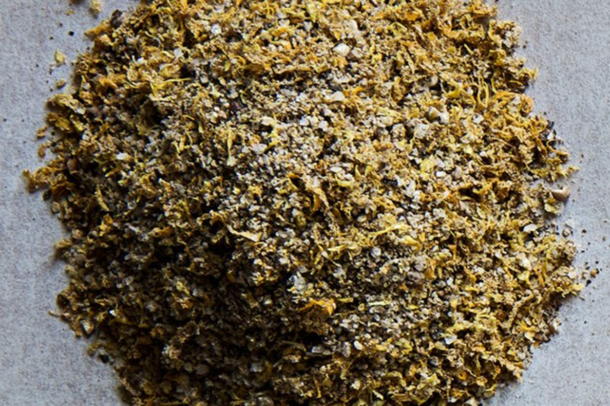 Посыпьте этой свежей приправой смазанную оливковым маслом курицу или стейк перед жаркой или запеканием. Смесь также восхитительно подойдёт для поджаренных на гриле трески или тунца. ИНГРЕДИЕНТЫ: · 2 столовые ложки целого чёрного перца · 3 столовые ложки мелко натёртой цедры лимона · 1 столовая ложка соли ПРИГОТОВЛЕНИЕ: Мелко измельчите весь чёрный перец в мельнице для специй. Пересыпьте перец в маленькую миску, добавьте цедру лимона, соль и перемешайте. Хранить в герметичной упаковке при комнатной температуре.