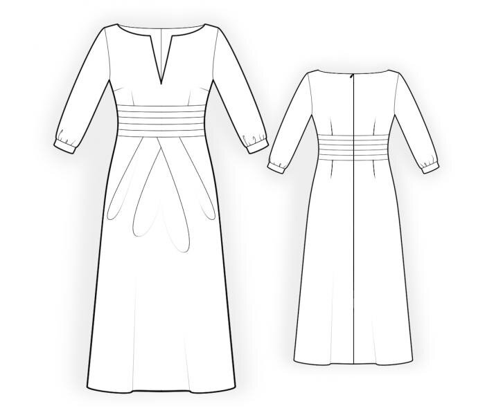 РЕКОМЕНДАЦИИ ПО ВЫБОРУ ТКАНИ: хорошо драпирующиеся плательные ткани из натуральных или смесовых волокон, гипюр в тон основного цвета.