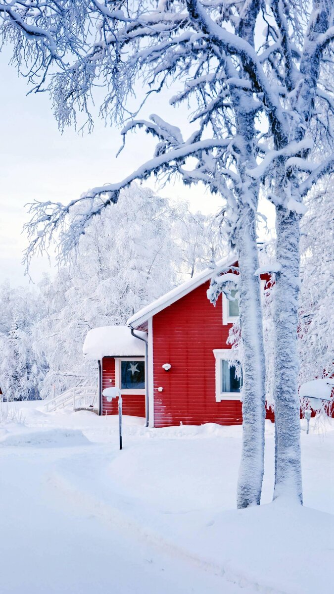 На картинке изображён зимний дом Справа от меня стоит снежное дерево Дом красного цвета На улице утро Картинка разноцветная Возможно на улице месяц январь так как всё замёрзло Дорожка возле дома почищена Фонарь замёрз Дома никого нету потому что в доме не топится печка Мне понравилась эта фотография, так как она передаёт всю суть картинки
