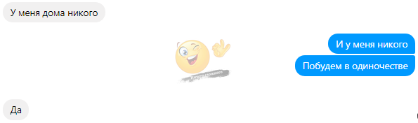 "Даже наличие собеседника, и то, кем бы он ни был –человек или сам Бог, – как представляется, у многих говорящих не всегда предполагает диалог."- Владимир Лучит. Что может пойти не так в переписке между двумя людьми? Да может случиться все что угодно, собеседники бывают разные, а ответы на сообщения могут оказаться на столько неожиданными, что остается только удивляться находчивости, либо посмеяться над ними. Но еще более смешнее и поразительнее, когда между двумя людьми произошел диалог с необычной концовкой. Ну в общем сейчас все сами увидите!!! Неожиданная развязка Ну кто бы мог подумать, что вот так все закончится. Я ожидал что сейчас они договорятся о встрече и проведут время с пользой, но что то пошло не так и сегодня одиночество с красит их одинокие вечера. Ну тоже не плохо побыть наедине с собой, есть над чем подумать. Но все-таки думаю у них получилось встретиться, нельзя упускать момент. Комплимент Из далека зашел!!! Почему бы сразу не попросить старые вещи? Но есть один