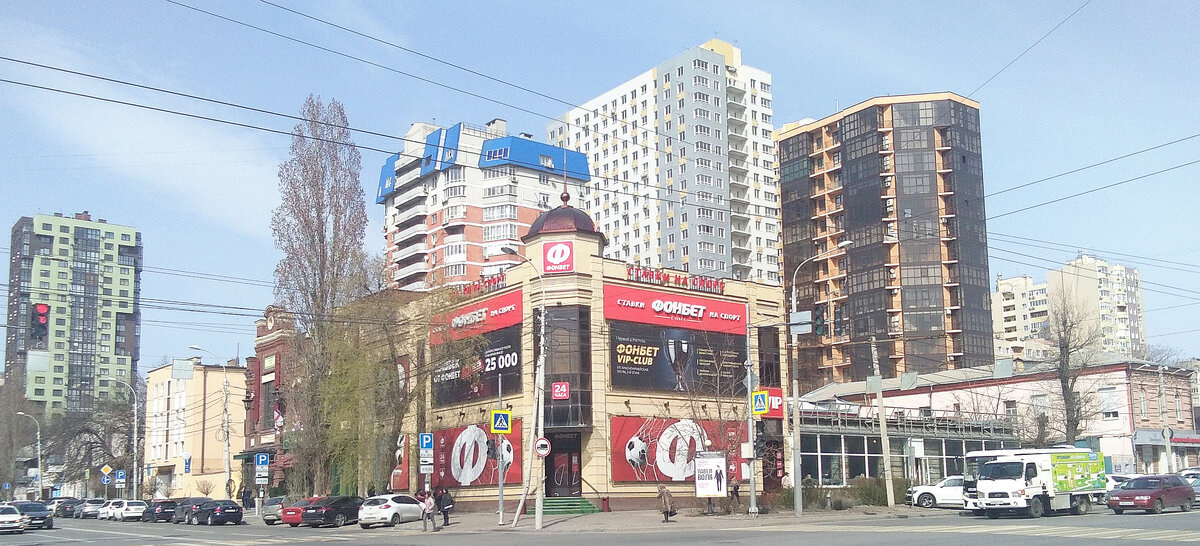 Во что превращаются наши города там, где власти уже успели протянуть свои руки после развала СССР? Почему так происходит? Давайте проанализируем это на примере пары-тройки кварталов в самом центре моего города миллионика, где во времена СССР были лишь дореволюционные и малоэтажные строения. На мой взгляд, это квинтэссенция творящегося при застройке хаоса. На освобождающихся пяточках земли вырастают стоящие впритык друг к другу всё более и более высотные сооружения. При этом они никак не связаны ни стилем, ни цветом, ни формой, ни даже материалами отделки. Никому нет дела где те, кто приобретет квартиру в этих новостройках, будут парковать свои авто, где будут гулять с детьми. О красоте и гармонии панорамы города, вообще нет никому дела. А ведь ещё во времена СССР не было подобного отношения. Посмотрите на открытку времен СССР. Между прочим, это в 10-15 минутах ходьбы от современного «ужаса». Вот где есть и единство стиля, цветовой гаммы, симметрии и, при этом, предусмотрено пространс