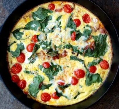 Омлет Фриттата Это омлет по итальянский с начинками, который сначала готовят на плите, затем запекают в духовке. Ингредиенты: Приготовление Помидорки разрежьте пополам и положите срезами на бумажное полотенце, чтобы избавиться от излишков жидкости. Перец очистите и порубите на крупные кусочки. Яйца взбейте с солью и молоком, добавьте туда сыр. Сковороду со съёмной или металлической ручкой смажьте маслом. Красиво разложите помидоры и перец, аккуратно залейте их яичной смесью. Обжаривайте блюдо на плите, пока не схватится верхний слой. Затем поместите сковороду в духовку (не забыв снять пластиковую ручку), разогретую до 200 градусов. Запекайте около 10 минут. Готово❤️ Омлет Пуляр Готовим: Отделяем желтки от белков. Белки будут взбиваться поэтому для них нужно подобрать ёмкость побольше. Добавляем к желткам молоко и перемешиваем венчиком или вилкой до однородного состояния. Добавляем к белкам соль и чеснок и взбиваем миксером до твёрдых пиков: белковая масса сильно увеличится в объёме, а