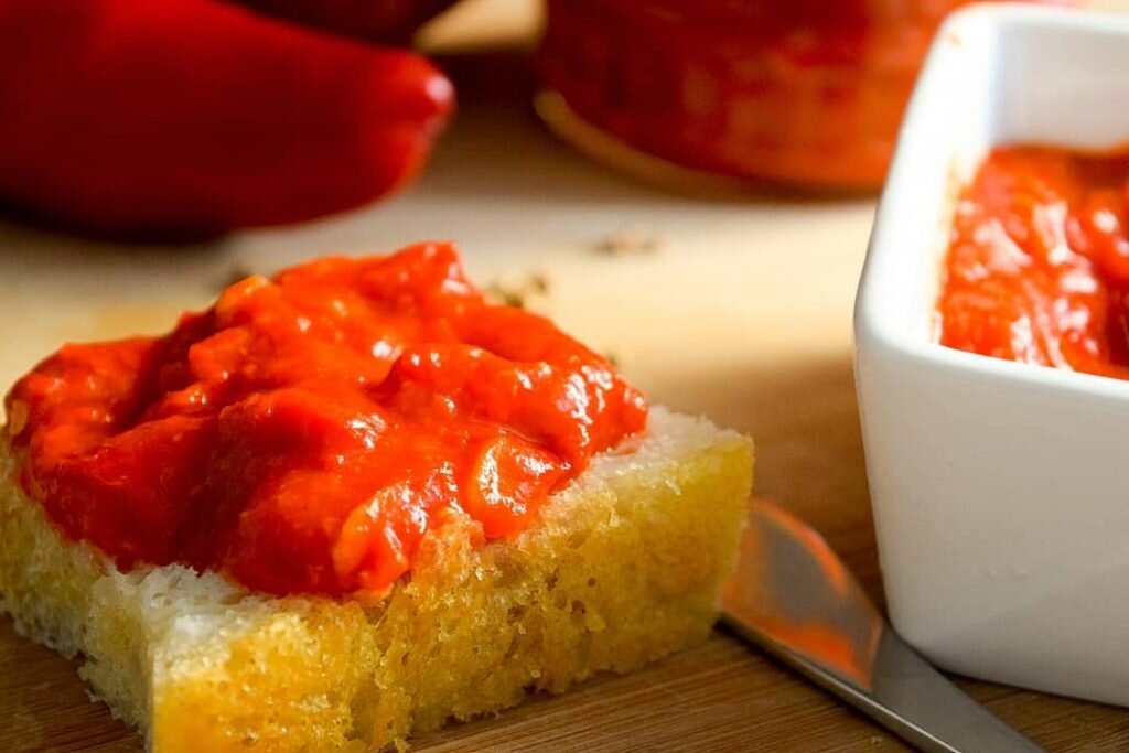Поближе пододвигаем к себе большую корзинку свежего хлеба, и намазываем это «перечное» безумие и трескаем.