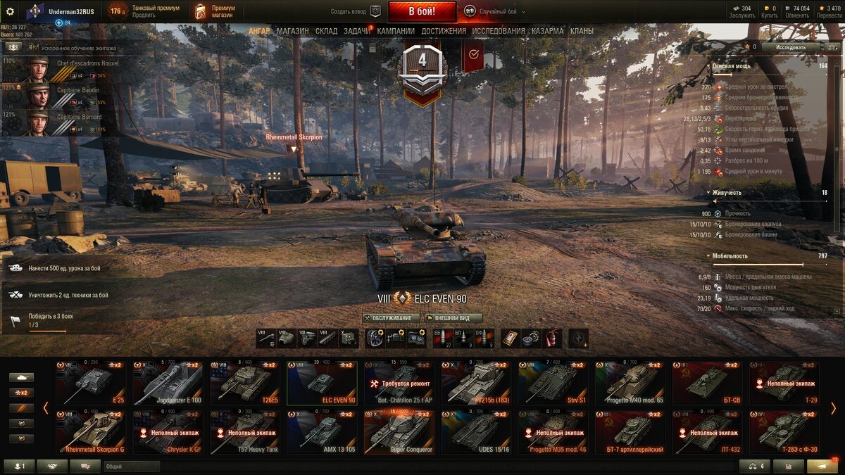 Приветствую танкист! В нашем World of Tanks довольно много классов танков. Каждый из них имеет свои плюсы и минусы, сильные и слабые стороны, их нужно правильно реализовывать и вовремя избегать критических ситуаций. Каждый из классов требует определённых умений и соблюдения правил игры на данной технике, как раз герой статьи один из узкоспециализированного класса - из класса лёгких танков, да не простых а из премиумного сегмента. Встречайте, ELC EVEN 90 - французский лёгкий танк 8-го уровня дерева Франции. Что мы получаем за эти деньги? Почти за 1500 рублей мы получаем крайне неординарную машину. Первые бои на этом танке могут ввергнуть вас в шок - на сколько он будет вам казаться слабым по сравнению с обычными 8-ками. Это пройдёт через пару десятков боёв, как только вы прикатаетесь к танку - вы поймёте каково обладание самым незаметным лёгким танком в игре. Наверняка многие думают что тут мега-крутое орудие? Нет, его сила не в орудии - его вам придётся применять как на американском