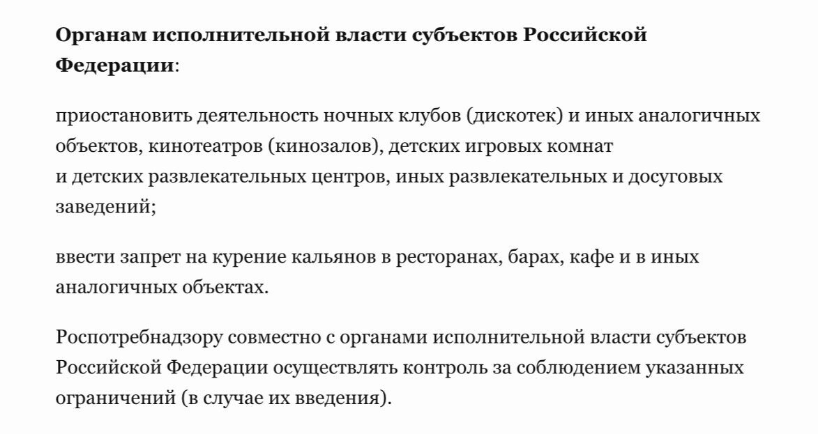 Хоть это и неизвестно чей канал, но примерный портрет аудитории имеется. Дорогие мои замкадыши, тёмщики, лоропьянцы, камриводы и работники социальных служб. У меня для вас ОЧЕНЬ плохие новости: суета всё-таки дозвонилась до нас. Теперь запрещено брать шланги в рот. Если быть точнее, то из-за угрозы распространения коронавируса оперативный штаб запретил регионам курение кальянов в ресторанах, барах и кафе. Также теперь закроются все ночные клубы, кинотеатры и, скорее всего, ТЦ (они подходят под категорию «развлекательные и досуговые заведения»). Не смешно.