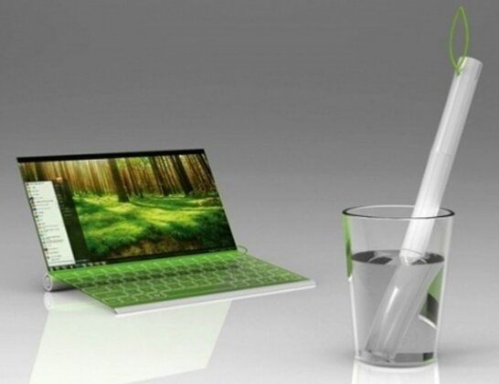 БУДУЩЕЕ НАЧАЛОСЬ - PLANTBOOK АВТОР: LYALYUK ANNA Пожалуй, на сегодняшний день Plantbook можно назвать самым необыкновенным концептом ноутбука. Его авторами являются – корейцы Hyerim Kim и Seunggi Baek. Своим воображением они буквально поразили весь мир технологий! У ноутбука Plantbook гибкий дисплей, сенсорная клавиатура, и… он сворачивается в трубочку! Также для его зарядки можно не просто использовать обыкновенную солнечную энергию, но и воду! Невероятно то, что при этом гаджет вдобавок вырабатывает кислород! Чтобы все понять владельцу ноутбука, была создана специальная петелька в виде листика, которая отображает уровень заряда батареи. Разработка уже заинтересовала многих инвесторов, так как это первая многообещающая функциональная технология, которая, в первую очередь, не только модная и актуальная, но и максимально рассчитана на заботу о природе и ее экологии.