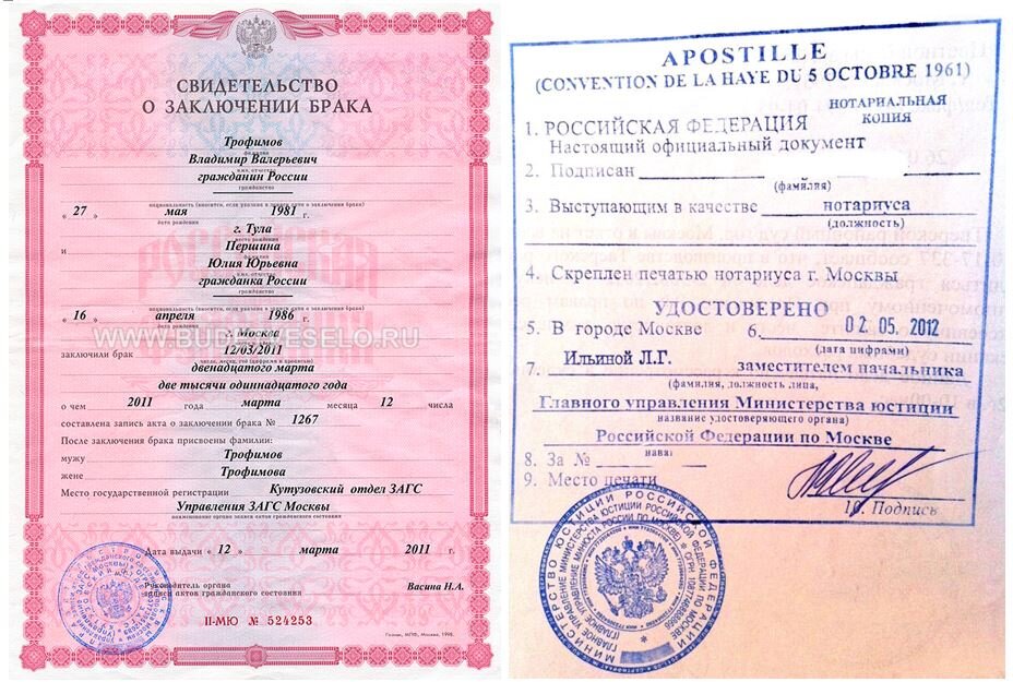 Апостиль на свидетельство о браке: каков порядок процедуры? On-line подсчет стоимости на калькуляторе.