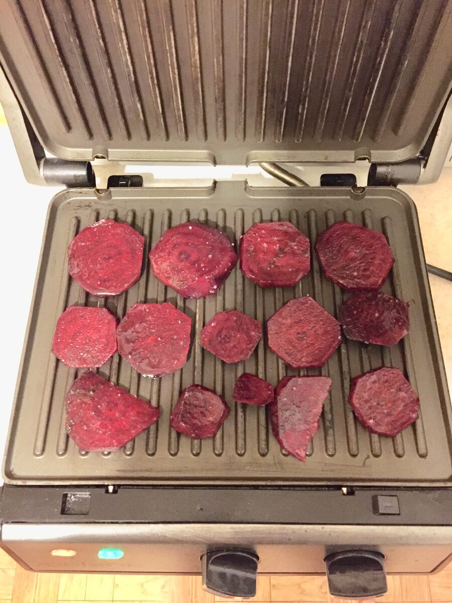 Счастье в простых вещах. В последнее время убеждаюсь всё больше и больше. Чем проще блюдо, тем оно полезнее. Недавно посетили в нашем городе стейк - бар, где на гарнир предложено было заказать свеклу гриль. Звучит неплохо, подумала я. Но заказывать не стала, а приготовила дома. Всё достаточно просто. Нам понадобится несколько свёкл. Моем, разрезаем. Добавляем соль, перец, взбрызгиваем оливковым маслом. Размещаем на гриль, ждём минут 7-10. Свекла-гриль готова! Приятного аппетита!