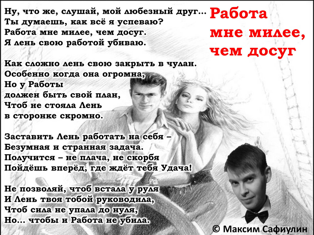 Работа мне милее, чем досуг (стихи Максима Сафиулина) Читает Данила Дорогов