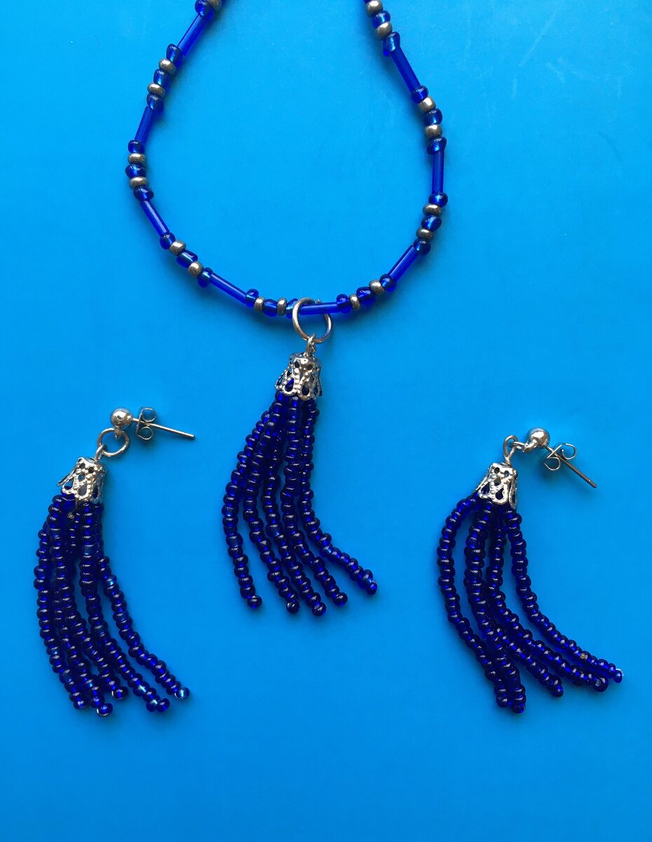 Нет худа без добра. Внезапно образовавшиеся вынужденные выходные подарили массу свободного времени. Почему бы сидя дома в самоизоляции не пополнить коллекцию собственных украшений? Бисероплетение занимает много времени и требует большого терпения, но можно без особого труда сделать украшения, просто собрав несколько бисерных нитей в кисточки. Из одинаковых заготовок комплектуются и серьги, и подвеска. В качестве цепочки для таких подвесок отлично подходит леска или капроновая нить с нанизанным на неё бисером и стеклярусом. Серьги и подвеску можно сделать любой длины, и собрать их из любого бисера. Для более изящных комплектов лучше использовать более дорогой калиброванный и мелкий бисер. Здесь представлены украшения из однотонного крупного бисера, но можно запросто подобрать любые цвета, чередуя их в произвольном порядке. Для небольшого колье понадобится не только стандартный бисер, но и тот, в котором пробито два отверстия. Серьги и подвеска в этом комплекте - из металлических бусин,