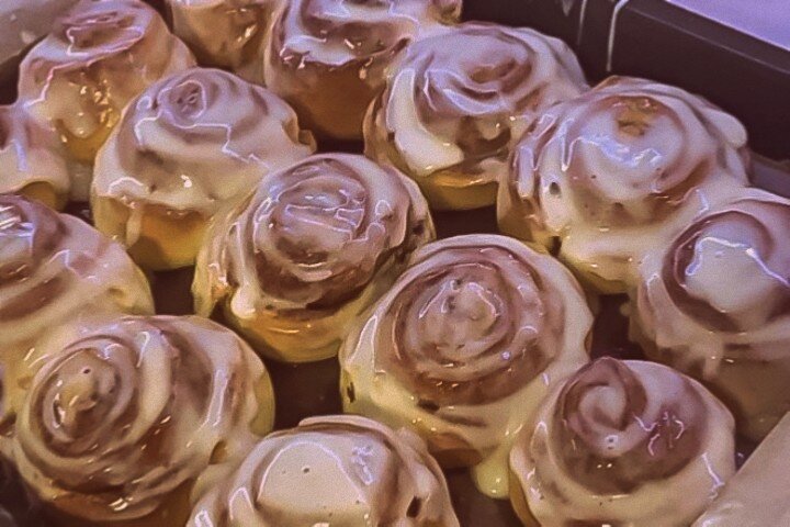 Дочка моей подруги - замечательная хозяйка, испекла такую красоту и вкуснятину. У меня самой пока руки не дошли попробовать, поэтому делюсь Машенькиным рецептом. Ингредиенты: Тесто: молоко - 250 мл, дрожжи сухие - 2 ч л, сахар - 100 гр, яйца - 2 штуки, сливочное масло - 80 гр, мука - 3 - 4 стакана Начинка: корица - 2 ч л, сахар - 4 ст ложки Крем: сыр творожный - 250 гр, сливочное масло- 60 гр, сахарная пудра - 100 гр Приготовление: В теплое молоко положить дрожжи, размешать и поставить в теплое место на 15 минут. В отдельной ёмкости смешать яйца, масло, сахар. Эту смесь добавить к молоку с дрожжами, перемешать и постепенно ввести муку ( ее можно положить и меньше 4 стаканов, нужно смотреть как будет выходить нужная, не слишком плотная, консистенция) Сначала тесто размешивать венчиком, потом - руками. Готовое тесто накрыть салфеткой и поставить в теплое место на 1 час. Раскатать тесто толщиной 0,5 - 0,7 см. Смазать маслом и посыпать смесью сахара с корицей. Скрутить рулет и разрез