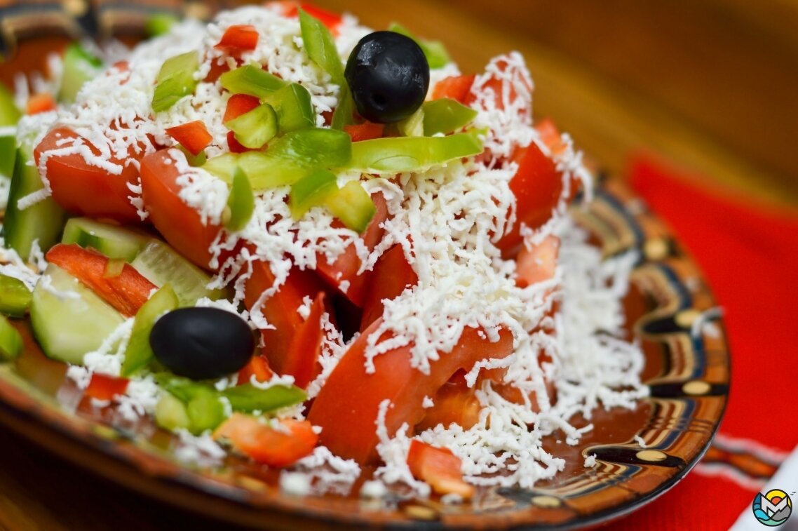 Популярный на Балканах «Шопский салат» (Šopska salata) пришел в Черногорию из Болгарии («шопами» называли жителей западной части этой страны). В его состав входят помидоры, огурцы, лук, болгарский перец (сырой, маринованный или жареный), сыр, зелень, маслины, оливковое масло, уксус, соль, молотый перец. Убрав сыр и маслины, добавив свежий зеленый острый перец, получаем «Сербский салат» (Srpska salata). С небольшими вариациями его можно встретить как «Черногорский салат» (Crnogorska salata).