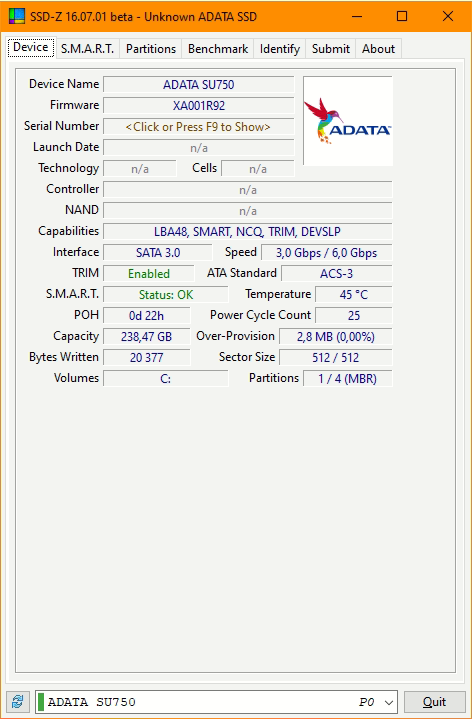 У меня в пользовании есть достаточно старый компьютер следующей конфигурации: Я решил взбодрить системы с помощью установки SSD. Выбор пал на бюджетный накопитель ADATA SU750 на 256Гб. После настройки операционной системы я провел тесты скорости с помощью нескольких программ. Важное замечание - SSD подключен через SATA 2, т.е. максимальная пропускная способность интерфейса ограниченна 300 Мбайт/с и SSD не сможет выдать скорости, заявленные производителем. Программа SSD-Z показывает следующую информацию о носителе. Состояние SSD через смарт из CrystalDiskInfo. Диск новый и находится в отличном состоянии. SSD занят на 78% - установлена операционная система Windows 10, программы и игры, т.е. это типичное состояние для многих пользователей. Начнем с простого копирования большого объема информации - архив на 17Гб. Первые 2-3Гб копируются с максимальной скоростью, потом скорость проседает до уровня 120-130Мб/с. Это неплохой результат, т.к. многие бюджетные SSD при таких задачах в итоге про