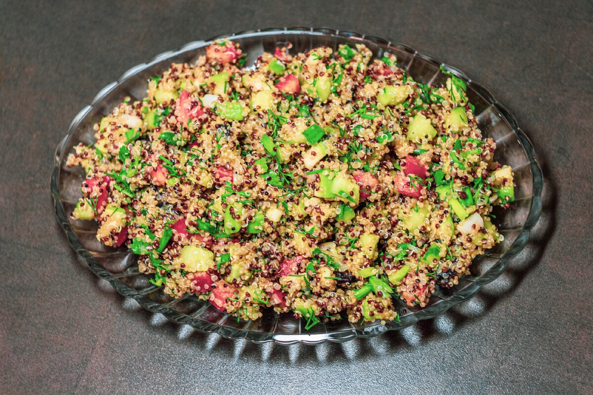 Табуле – это тёплый Ливанский салат. Невероятно полезный, вкусный и для того, чтобы его приготовить, не нужно быть суперкулинаром, да и вообще уметь готовить. Классический табуле создается на основе булгура, но мне больше нравится делать этот салат из киноа. Такой вариант отлично подойдет всем тем, кто следит за своим здоровьем и фигурой. И так как киноа суперфуд, её полезность несоизмерима, да ещё и вкупе со свежими овощами. Да и вообще киноа входит в рейтинг самых полезных продуктов в мире и имеет самый уникальный состав витаминов и микроэлементов. Так что делайте выводы. Ну и давайте уже приступим к приготовлению теплого салата «Табуле». Ингредиенты, которые нам понадобятся: Процесс приготовления: Салат готов. Можно приступать к трапезе. Хоть это и салат, я его употребляю как полноценное блюдо. Потому что он очень сытный, и быстро наполняет организм энергией. И кстати, табуле очень быстро съедается, так что советую делать его побольше. Но желательно съедать в тот же день, когда