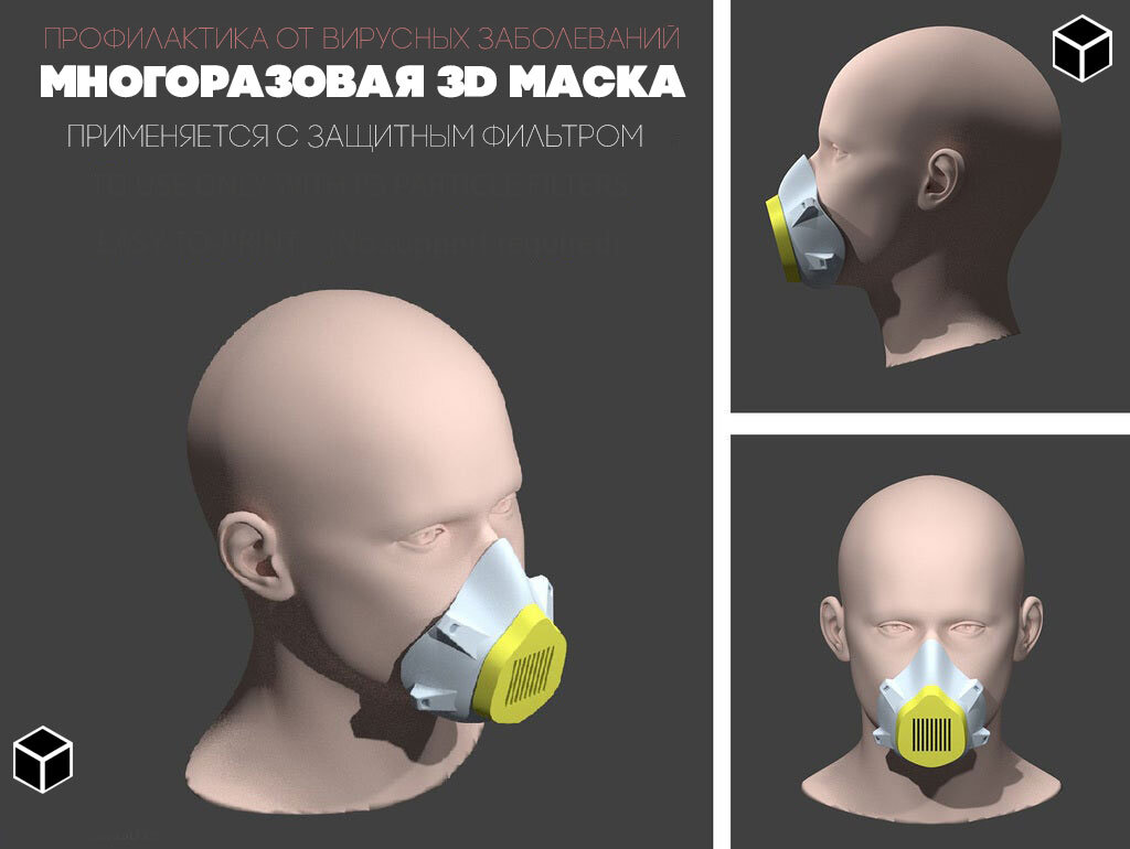 Если нет возможности приобрести себе медицинскую маску или стоимость одноразовой маски за 20 рублей увеличилась в стоимости в десятки раз, то самое время пойти альтернативным путём и напечатать респиратор по технологии 3D печати. Что из себя представляет маска? По сути маска состоит из четырех элементов, а именно: 1. Сетка 2. Маска 3. Фильтр 4. Колпак Все элементы вы можете увидеть на картинке снизу. Чтобы напечатать её самому нам потребуется принтер, но можно просто взять макет и отправиться с ним в ближайшую студию 3D печати с обычным макетом (рисунок). Вот так происходит сам процесс печати. Видео не получилось загрузить. И на практике получаем готовый продукт многократного применения. Отличный респиратор для различных целей и нужд. Если понравилась статья, ставьте лайк и подписывайтесь! Так вы поможете развитию канала :)