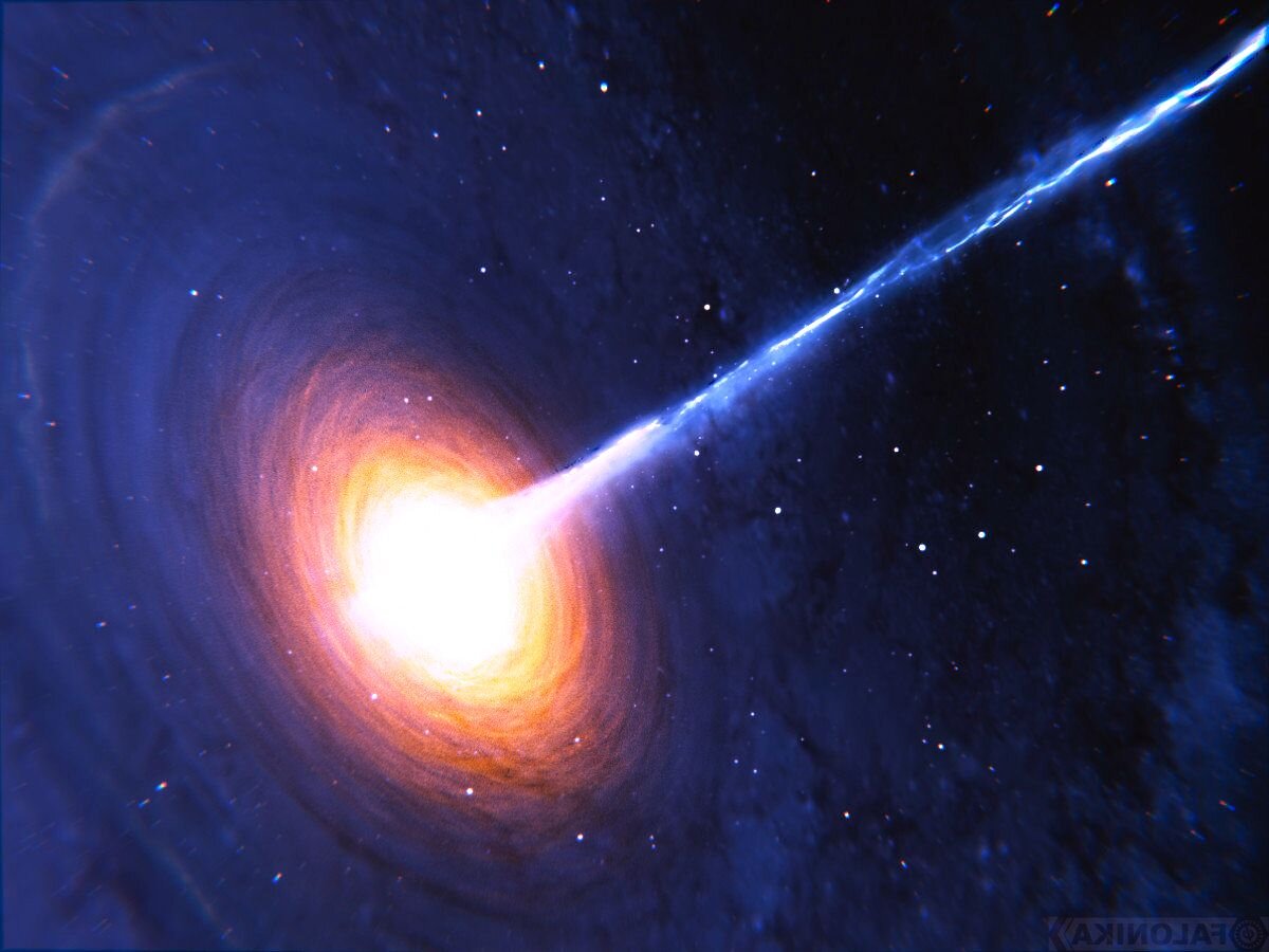 Квазар это один из разновидностей космических объектов особенностью которого является невероятно мощная яркость свечения и относительно не большим размером, что на протяжении многих лет их принимали за обычные звёзды. Квазар это внегалактический объект по своей мощности вероятно превосходящий любые другие космические объекты вселенной. Что же представляет из себя это явление, в центре вращающегося газового диска предположительно находится невероятных размеров чёрная дыра. Основная горячая часть является источником электромагнитного излучения который может распространяться только вдоль оси диска, что и придаёт ему столь не обычную форму. Квазары находящиеся относительно на небольшом расстоянии от нас достаточно сложно определить их строение в оптическом диапазоне. Первым человеком сумевшим обнаружить квазар был голландский астроном Маартеном Шмидтом. Одним из самых необычных свойств этого космического объекта является красное смещение которое представляет из себя значительно смещен