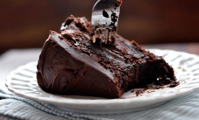 Ингредиенты: ● Мука пшеничная 1,5 ст. ● Какао-порошок 4 ст.л ● Сода пищевая 1 ч.л ● Лимонный сок 1 ст.л ● Сахар-песок 200 гр. ● Масло растительное 1/4 ст. ● Ванильный сахар 0,5 пакетика ● Соль 1 щепотка ● Вода 200 мл. ● Растворимый кофе 0,5 ч.л. Приготовление: 1. В большой чашке смешать сыпучие продукты: муку, соль, соду пищевую, какао-порошок. В другой чашке смешать растительное масло с сахаром, добавить растворимый кофе, лимонный сок и воду. Взбить миксером до полного растворения сахара. Затем в сухую смесь влить жидкую часть теста и тщательно перемешать с помощью миксера или привычного для многих венчика. 2. Вместо какао можно использовать темный шоколад, для этого нужно будет плитку шоколада растопить на водяной бане и добавить в готовое тесто. 3. Затем разогреваем духовку до 180°. Противень или форму для выпечки смазать сливочным маслом и слегка припорашить мукой или манной крупой. Вылить подготовленное тесто и отправить форму в духовку на 40 — 45 минут. 4. Готовый пирог полностью