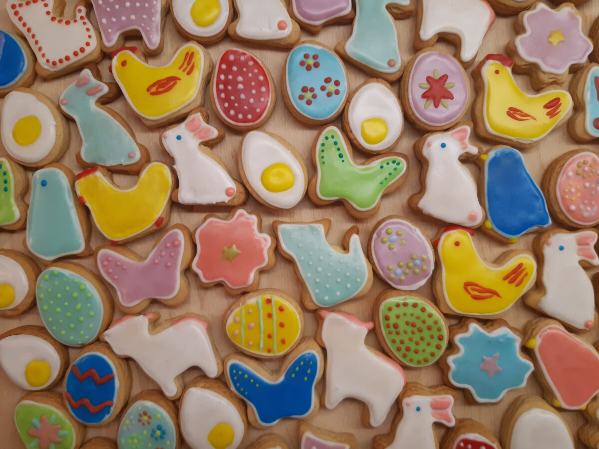Доброго времени суток, дорогие читатели! Скоро Пасха, и все мы будем красить яйца, печь куличи и булочки. А я хочу предложить вам разнообразить пасхальное меню и испечь красивое пасхальное печенье. Приготовьте это печенье вместе со своими детками. Юные кондитеры будут в восторге и от самого процесса, и от результата. А какой вкусной будет эта выпечка: песочное тесто, сахарная глазурь и ванильный аромат никого не оставят равнодушным! Продукты для теста При желании добавьте в тесто молотые орехи или урбеч (ореховую пасту), например, миндальный или из кешью. Также нам понадобятся фигурные формочки для вырезания фигурок из теста. Хорошо, если они будут близкими к пасхальной тематике - яички, зайчики, курочки. Приготовление Яйца смешать с сахаром, солью и мягким маслом. Добавить в тесто молотые орехи или урбеч. Можно поделить тесто на несколько частей и сделать печенье с разными вкусами. Всыпать просеянную муку и разрыхлитель, руками замесить тесто. Оно должно получиться мягким и эластичны
