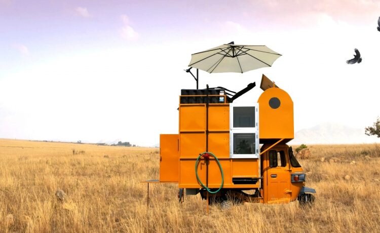 Индийская дизайн-студия The Billboards Collective разработала микро-дом на основе рикши для жизни в дикой природе Этот крошечный домик, построенный на основе трехколесной индийской повозки рикши, представляет собой съемную жилую зону размером всего 1,8 x 1,8 м , построенную из металлолома и прикрепленную болтами к задней части обычной трехколесной повозки. Это утилитарный дизайн компактного пространства в съемном корпусе на рикше, который может вместить одного человека, например, художника, путешественника, бездомного или даже мелкого прНесмотря на действительно крошечные размеры, интерьер вмещает довольно внушительный функционал. На первом этаже есть место для хранения, кухня, туалет и даже крошечная ванна, а на «антресолях» находятся кровать и столик для ноутбука. Снаружи небольшая зона с раскрывающимся крыльцом может использоваться в качестве витрины для товаров, а одежду можно повесить на выдвижной стойке. На крышу, где расположена небольшая терраса и зона отдыха, ведет лестниц
