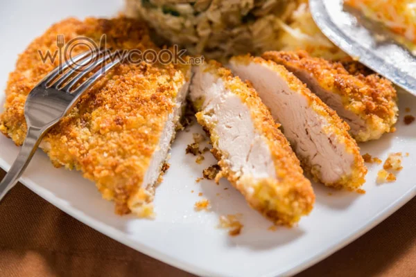 Вкусная, ароматная, нежная курица в панировке из румяных хрустящих сухарей готова! Приятного аппетита!