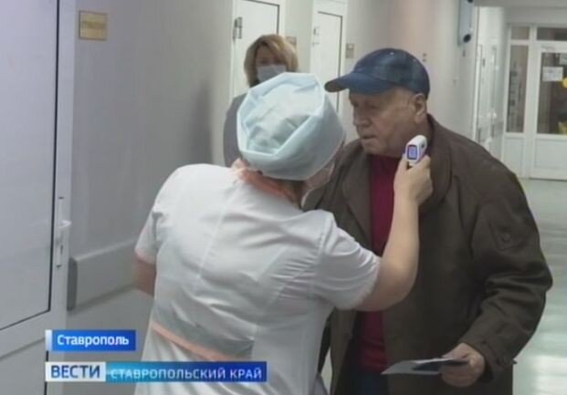 На Ставрополье поликлиники и больницы стали ещё внимательнее к санитарной обработке. График отлажен. Прием больных тоже изменился. Как сейчас встречают пациентов в Ставрополе, узнал корреспондент Глеб Лаврушенко. От замеров температуры в поликлинике никому не уйти. Есть два варианта. Если прибор показывает нормальную температуру, то без проблем в регистратуру или на прием к врачу. Если же температура прыгнула за 37, пациента направляют по другому пути. Его ждут в инфекционных боксах. К ним подход иной - вокруг больницы, чтобы не заразить других. И даже после осмотра больного к остальным не пустят. "При показаниях к стационарному лечению, уже на этапе инфекционного бокса вызывается бригада скорой медицинской помощи, которая подъезжает сюда же и госпитализирует пациента", - рассказала замглавного врача по медицинской части Ставропольского краевого клинического многопрофильного центра. Врачи просят по возможности лишний раз лично сюда не заходить. Хотя дезинфекция здесь проходит по график