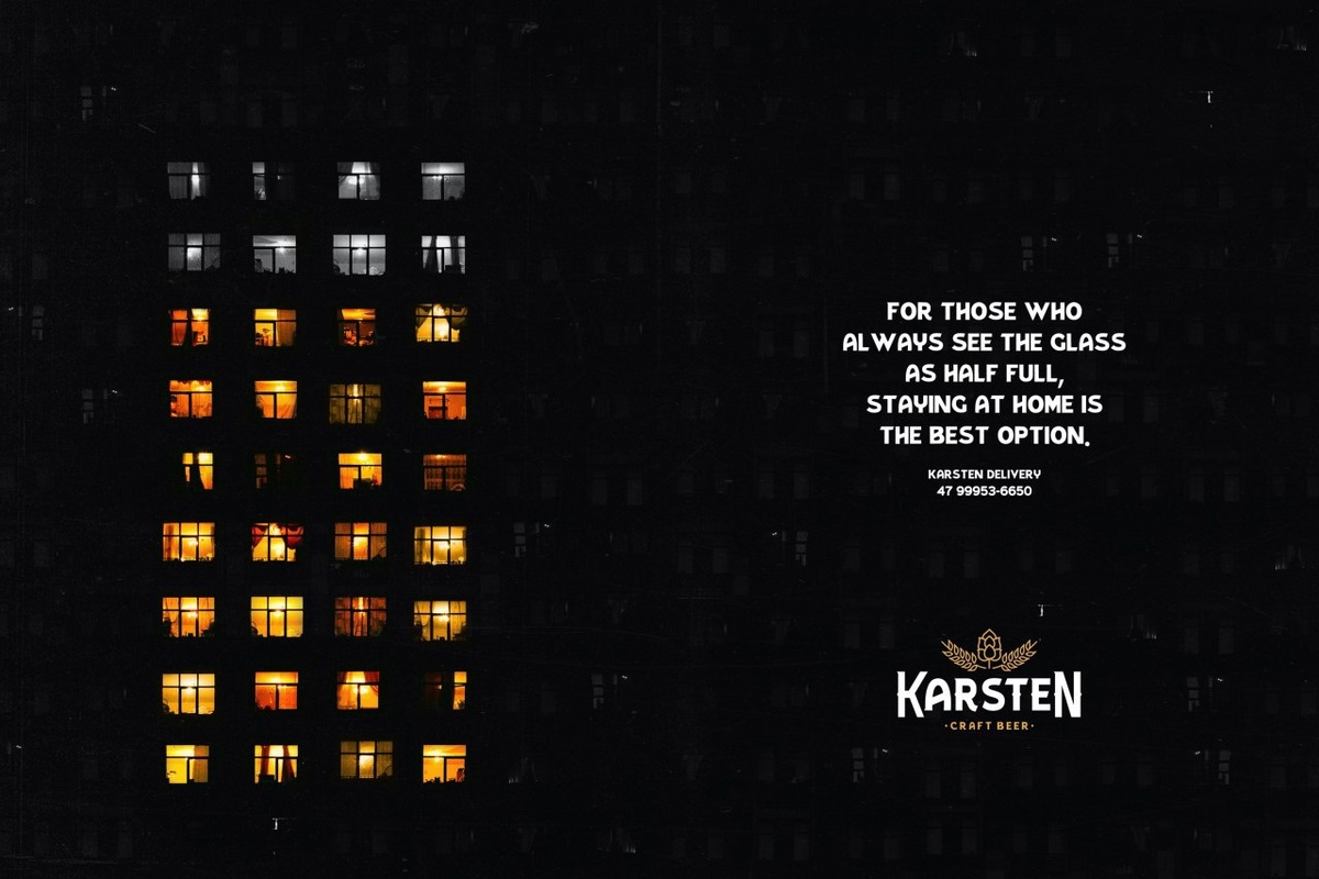 За 4 месяца угроза нового коронавируса достигла мирового масштаба, коснувшись здоровья уже 1,5 млн человек, если верить Университету Джона Хопкинса. Но жизнь на этом не останавливается, а лишь временно обретает границы, свыкнуться и принять которые готовы помочь известные бренды. Губит людей не пиво… Питейные заведения во многих странах закрыты на карантин, но это не повод отказывать себе в бокальчике крафтового пива, - уверены в Karsten. Компания запустила доставку в Бразилии, снабдив печатную кампанию теглайном: «Для тех, кто всегда видит стакан наполовину полным, остаться дома – лучший выход». Летучая помощь Арт-группа «Явь» рассчитывает на помощь супергероев в борьбе с вирусом. Ну, по крайней мере, одного – Бэтмена. «Бэт-сигнал» в виде летучей мыши с медицинской маской появился в виде световой проекции на одном из зданий Санкт-Петербурга. Активисты решили таким образом обратить внимание на необходимость ношения средств индивидуальной защиты: масок и перчаток! Инструкция по выжив