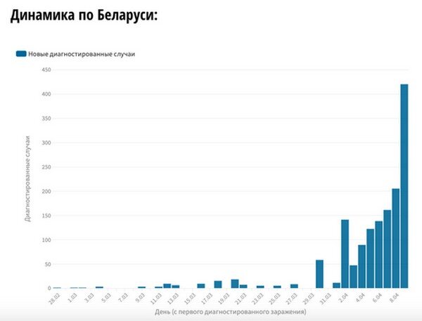 Лукашенко не перестает меня удивлять.Разве что еще в Таджикистане похожий маразм,где вообще не заморочились и тупо запретили говорить о коронавирусе. «Катастрофы абсолютно нет,— заявил господин Лукашенко.— Да, прирост у нас наблюдается. Слава богу, что не лавинообразный. И это надо удержать».-Прямая речь Господина Лукашенко во вторник. И вот,данный за сегодня.420 новых заражений.прирост 40%(!!!) за день. Неплохо,неплохо.... Вот что ответил Лукашенко на вопрос о возможности ввода карантина.- «У нас тут разглагольствуют кругом: карантин, комендантский час и прочее,— сказал Александр Лукашенко.— Это проще всего, это мы сделаем в течение суток. Но жрать что будем?» До последнего момента Белоруссия жила обычной жизнью,открыты кафе,рестораны,проводятся футбольные матчи(!!). Дошло до смешного.Сейчас НИГДЕ В МИРЕ не проводятся футбольные матчи.Так вот,уже порядка нескольких десятков стран закупили трансляцию футбола из белоруссии:) Ну тупо смотреть свежего больше нечего.Белоруссия станови