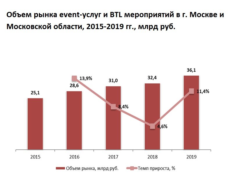 Объем рынка event-услуг и BTL мероприятий в г. Москве и Московской области превысил 36 млрд руб.
