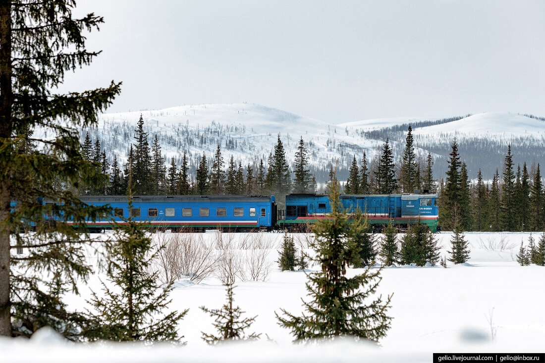29. Локомотивы и вагоны выкрашены в цвета флага Республики Саха (Якутия) — голубой, белый, красный и зелёный.
