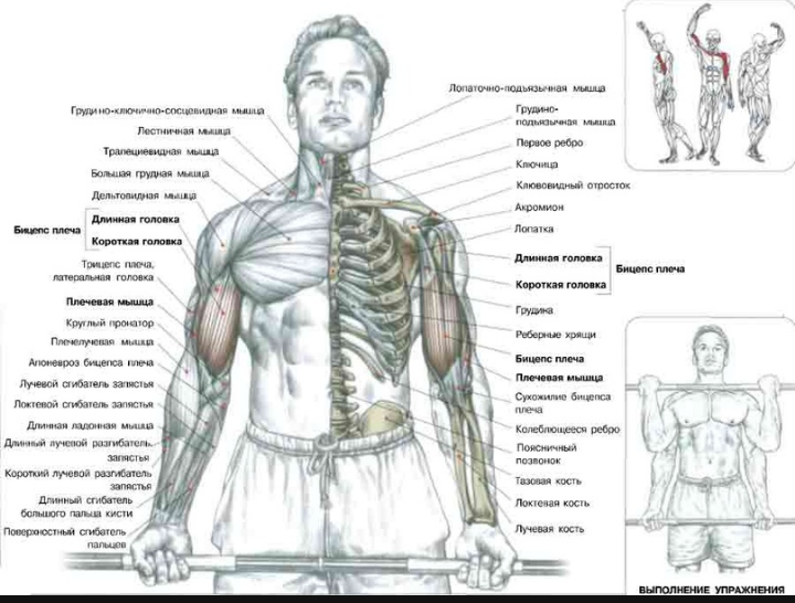 Когда вы стоите со штангой в руках, то все внимание должно быть не на штангу, а на само движение — сгибание предплечья в локтевом суставе. Знание основных функций мышц, позволит не делать лишних ненужных движений, которые как правило задействую не целевые мышцы.