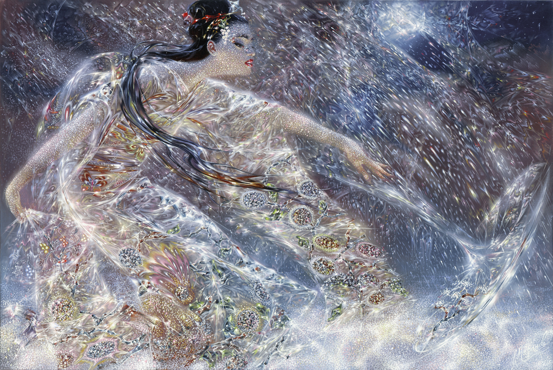Когда я пишу картину – я медитирую, но уже с кистью в руках. Каждое мгновение я пытаюсь добиться эффекта свечения. Каждый мазок, каждое моё движение посвящены тому, чтобы передать это сияние. Там – это полная голография с колоссальным объёмом. В материальном мире создать такое очень сложно.
