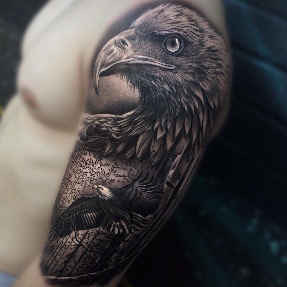Значение ТАТУ с Орлом Орел всегда был почитаемым животным и важнейшим образным символом. Он стал эмблемой всевидящих богов, храбрых воинов и посланником солнца. Орел ассоциируется с господством, победой и властью, отвагой и вдохновением, духовным развитием и подъёмом. Эта птица всегда считалась властелином воздуха. Символьное значение тату орла довольно однозначно — в нем воплощается мощь, зоркость, скорость и грациозность. Общее значение татуировки орла также выражается в воплощении атрибутов правосудия и образцов неисчерпанной свободы, символов бесстрашия и бессмертия. Спасибо за просмотр! Подписывайтесь на канал. Оставляйте свои комментарии.