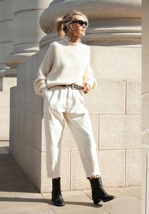Безумно молодящий, освежающий и ультрамодный цвет в современном гардеробе - белый. Ни для кого не секрет, что мы теперь смело носим белую обувь, брюки, джинсы. Еще более смелые и продвинутые модницы облачаются в тотальный белый. Цвет невероятно идет всем, но особенно хорошо смотрится в гардеробе взрослых женщин. Тем, кто пока не решается носить чистый белый, стоит обратиться к близким ему пастельным оттенкам, уходить в теплые (топленое молоко) или холодные (с примесью серого) тона белого.