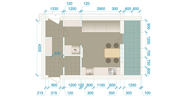 Предлагаем вашему вниманию вариант планировки маленькой кухни от дизайнера Виктории Акановой. 1. Все громоздкие предметы и шкафы Виктория Аканова расположила в более узкой части помещения, освободив основную площадь от засилия мебели и тем самым визуально увеличив пространство комнаты. 2. Цветовая палитра. Дизайн маленькой кухни намеренно решен в холодных оттенках бежевой и кофейной гаммы. Отсутствие ярких цветовых акцентов — намеренный прием, чтобы сделать пространство более открытым и целостным. Чтобы кухня-гостиная не выглядела слишком однородно, стены выкрашены в три тона. В качестве контраста использованы хромированные детали, светоотражающие глянцевые фасады и кухонный фартук, закрытый стеклом. 3. Кухня-столовая. По периметру потолка дизайнер пустила широкую полосу, контрастную по отношению к основному тону. Это позволило визуально поднять потолок. Кстати, полоса повторяется и на кухонном гарнитуре — верхние фасады навесных шкафов специально подобраны под цвет полосы. Дл