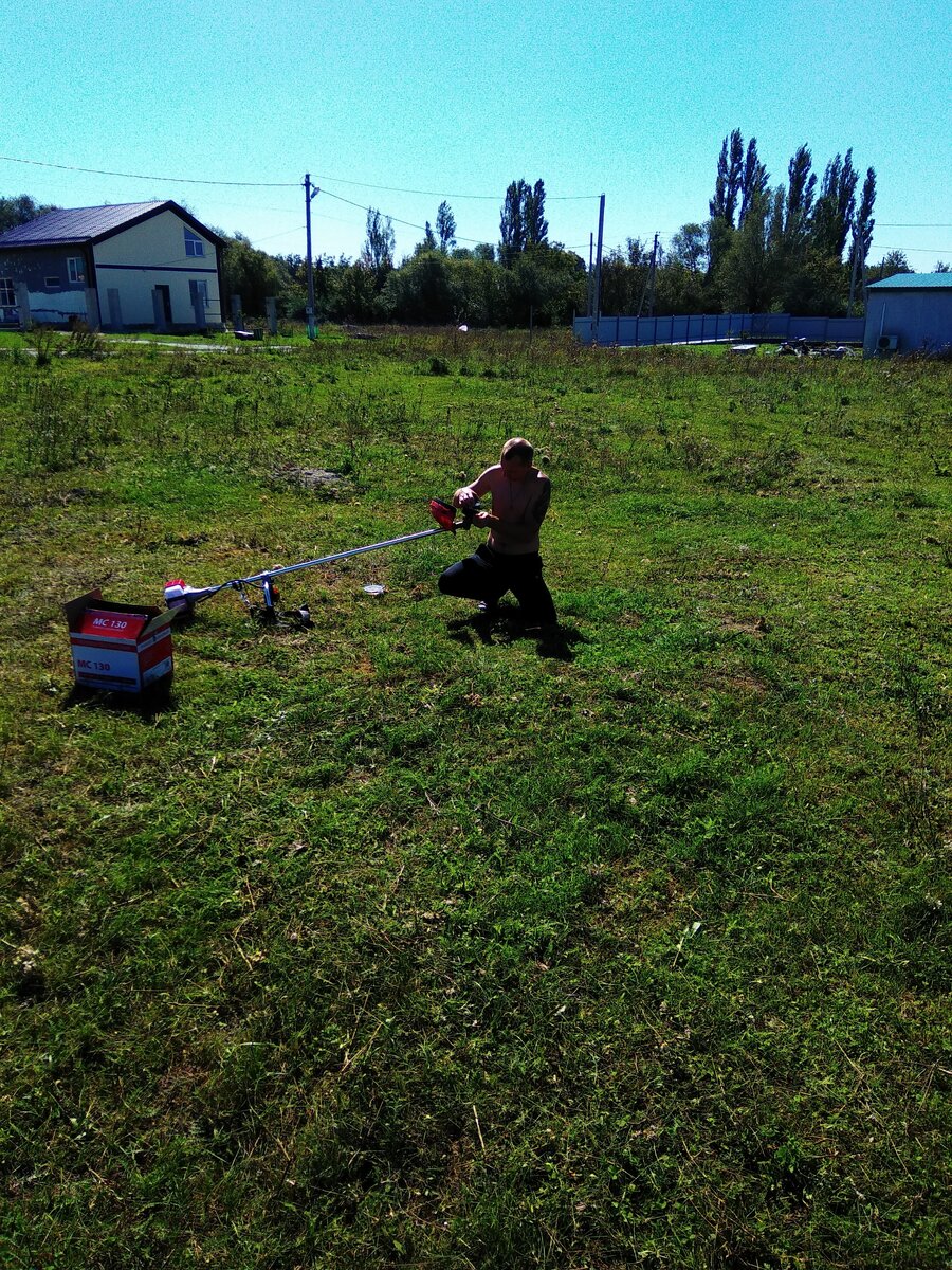 Разметка фундамента в принципе работа не сложная, но очень ответственная. Ведь от неё зависит какой геометрии будет ваш дом, все ли углы будут прямыми, диагонали ровными. И вообще чтобы всё было чётко! Участок у нас был голый, на нём кроме травы не было ничего ни одной палочки, поэтому начали мы с того, что поехали в Натухаевскую, на рынок пиломатериалов и приобрели там брусок некондицию 50 на 50 для колышков. Взяли штук 40 по-моему точно не помню. Затем началось самое весёлое: Для начала мы разместили 1 угол нашего дома. От одной границы участка отметили 9 метров, а от другой границы участка 8 метров и на их пересечении забыли первый колышек. Исходя из этого колышка начали мерить остальные углы. На второй угол вымеряли от границы участка 9 метров и от колышка 8 метров и уже в месте где они пересекались, встал второй колышек. И по такому же принципу установили все остальные колья. Вообще в такой почве как у нас, лучше делать железные колышки. Деревянные толстые, я их конечно застря