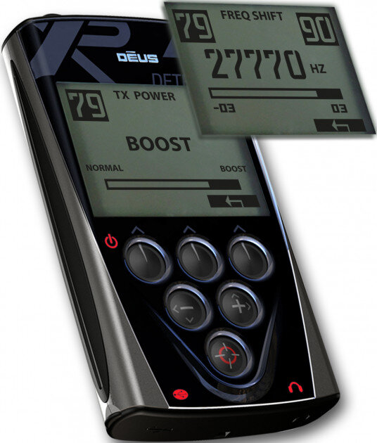 Главные рабочие элементы металлоискателя XP Deus - катушка, пульт дистанционного управления, наушники обмениваются информацией по беспроводной сети. Металлоискатель отличается высокой скоростью обмена данными и их точностью, легкостью, компактностью и продолжительной мощностью заряда батарей. Несколько пользовательских языков управления меню и настройками, среди которых русский язык (полностью русифицировано).