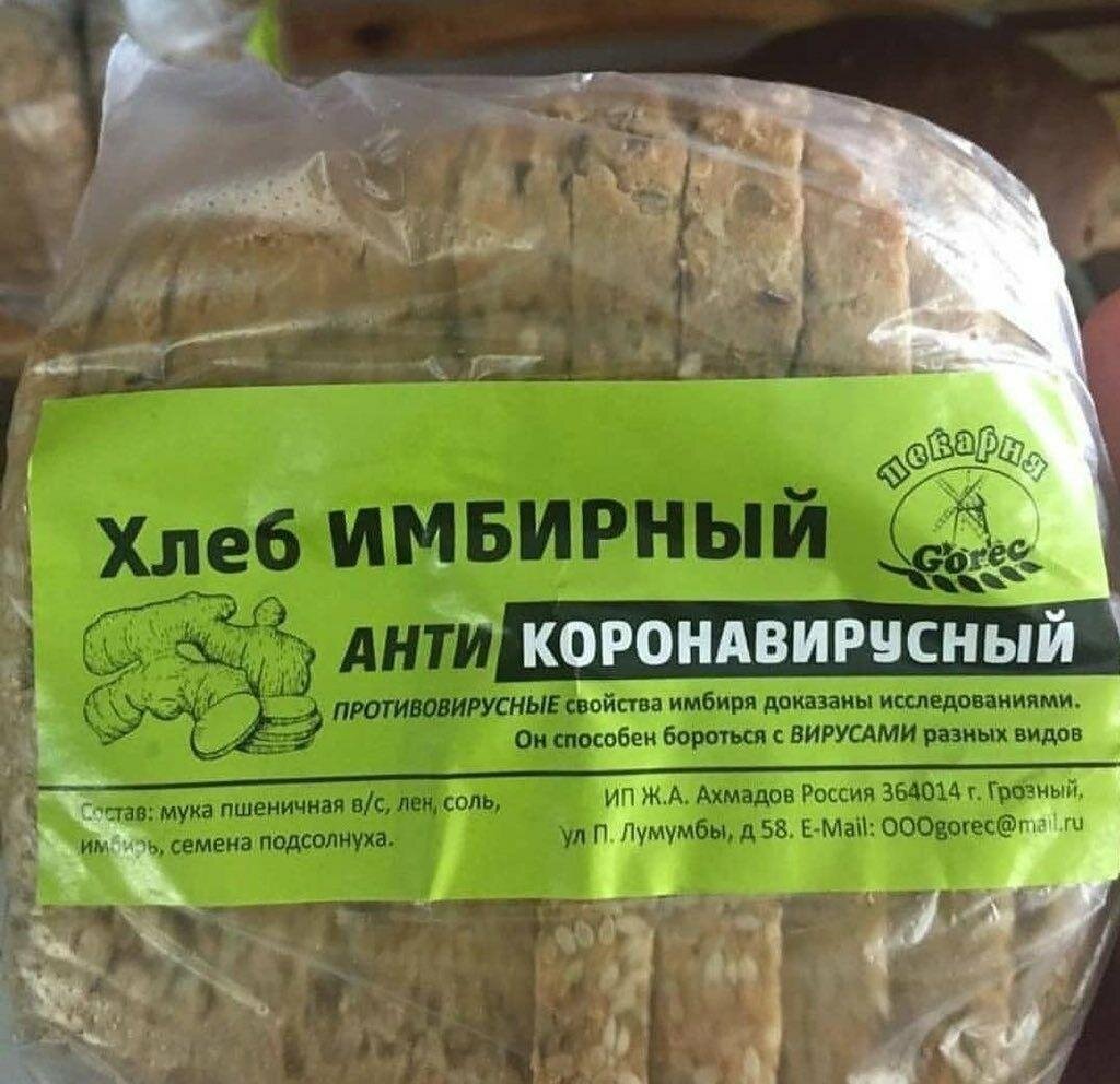 В России начал появляться хлеб против коронавируса. Как написано на упаковке, в составе есть имбирь, который якобы способен бороться с самыми разными вирусами.