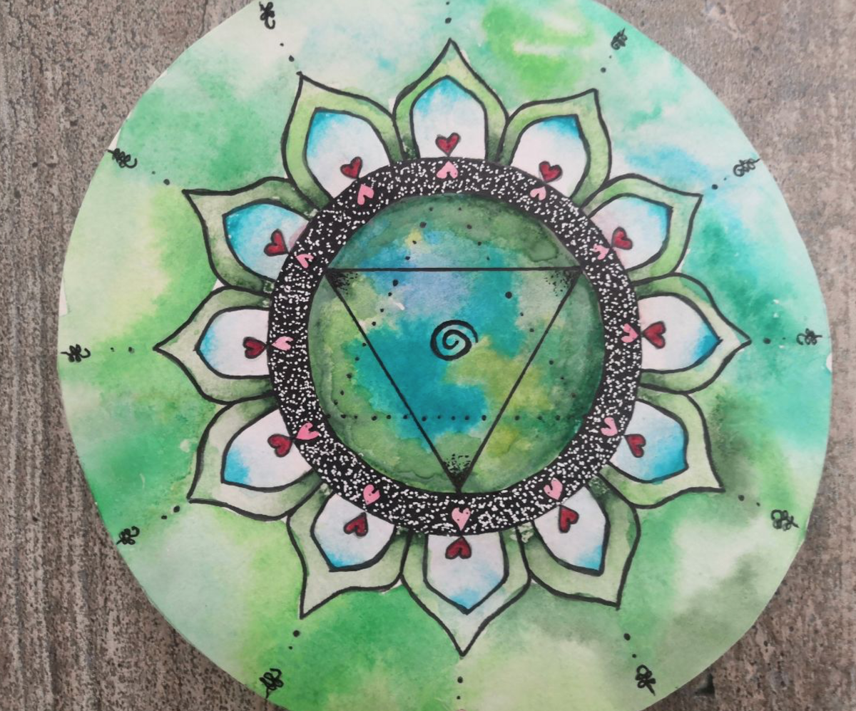 Взяв зеленый, как весенняя трава, лист бумаги, внимательно посмотрим на него и, удобно усевшись с выпрямленным позвоночником, начнем дышать на анахата-чакру. Она находится рядом с сердцем, ее стихия Воздух. Она имеет 12 лепестков и включается сострадательной и родственной любовью. Анахата - это удивительное место в нашем существе, где обитает счастье. Центр, объединяющий физические, эмоциональные, интеллектуальные и духовные энергии. Энергетический центр любви, который при правильном развитии дает способности к эмпатии и целительству. Качество ее энергии - прохлада. Она влияет не только на умение любить сердцем, сострадать, лечить руками, прощать обиды и доверять процессу жизни, воспринимать красоту, хранить верность любимым людям. От хорошей работы этой чакры зависит здоровье сердца, легких, системы кровообращения, кожи.