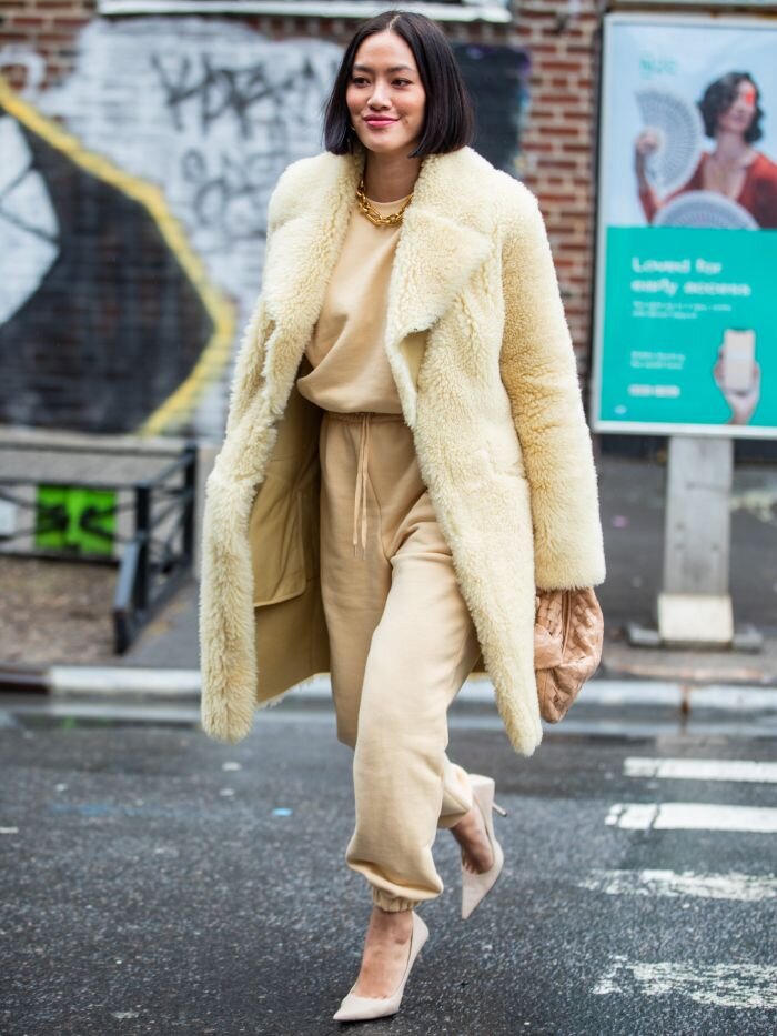 По всему Копенгагену и Нью-Йорку на Неделе моды люди ходили на показы в спортивных костюмах. И все они использовали один модный прием: отличное пальто, надетое поверх костюма.