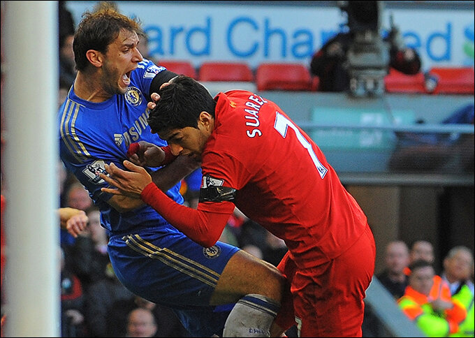Второй же случай пробуждения странных наклонностей случился уже в Англии 21 апреля 2013 года в матче 34-го тура Премьер-лиги между «Ливерпулем» и «Челси», где Суарес в середине второго тайма в игровом эпизоде попробовал на вкус руку защитника соперника Бранислава Ивановича. Нарушение осталось незамеченным арбитром, и Суарес не был наказан. После матча Суарес принёс извинения Ивановичу и «всему футбольному миру» за непростительное поведение. 24 апреля Футбольная ассоциация Англии дисквалифицировала Суареса на 10 матчей Премьер-лиги.