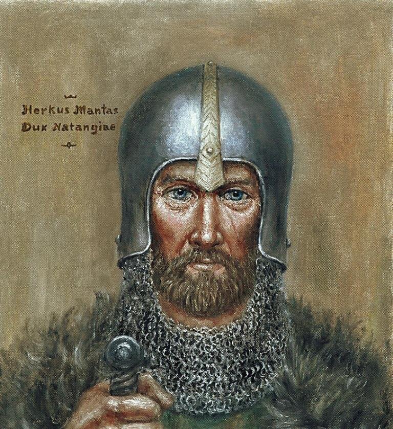 Катастрофическое поражение рыцарей Ливонского ордена и примкнувших к ним прочих крестоносцев в битве у озера Дурбе эхом отозвалось в той части Пруссии, до которой успел добраться другой военно-монашеский орден – Тевтонский. Не прошло и двух месяцев, как в сентябре 1260 года там заполыхало восстание, которому в историю было суждено войти как Второе (или Великое) прусское. В Самбии вождем бунтовщиков был некий Гланде, в Погезании заправлял Аттум, бартами руководил Диван (Диване) по прозвищу Клекине, что означает «Медведь», вармийцев поднимал на борьбу с угнетателями Глаппо (Глаппе). Каждый из этих славных мужей оставил след в истории, однако тевтонцам по ряду причин больше всего запомнился предводитель натангов Геркус Монте – он же Геркус Мантас, он же Генрикус Монтемин (на заглавной иллюстрации - рисунок Артураса Слепсиса).